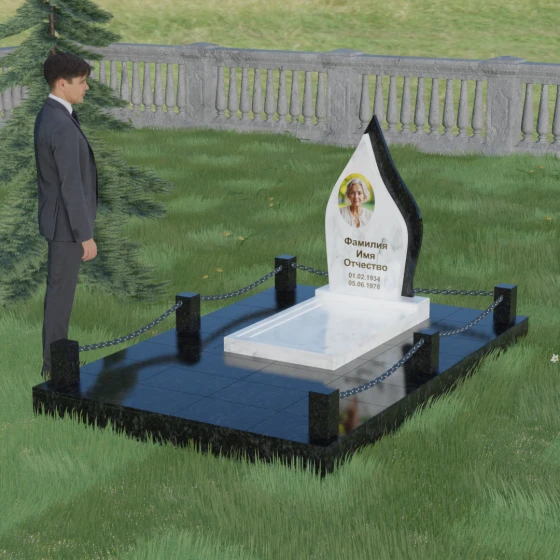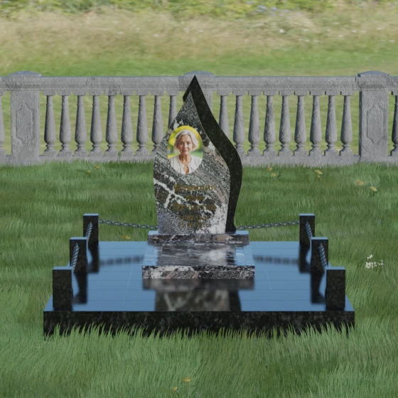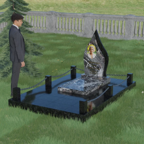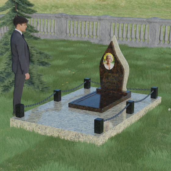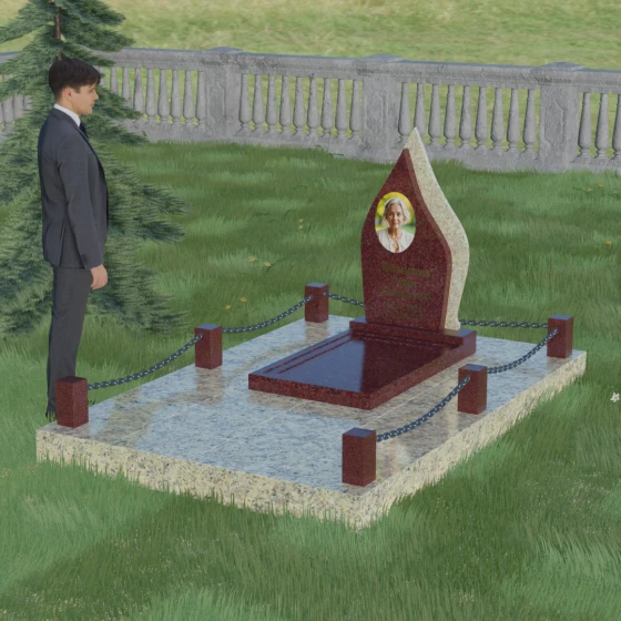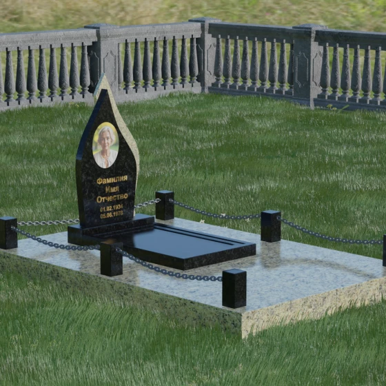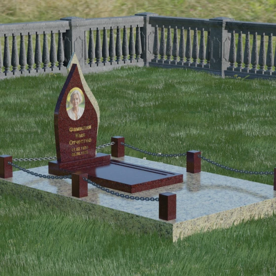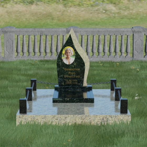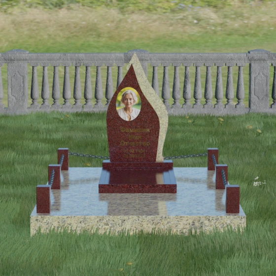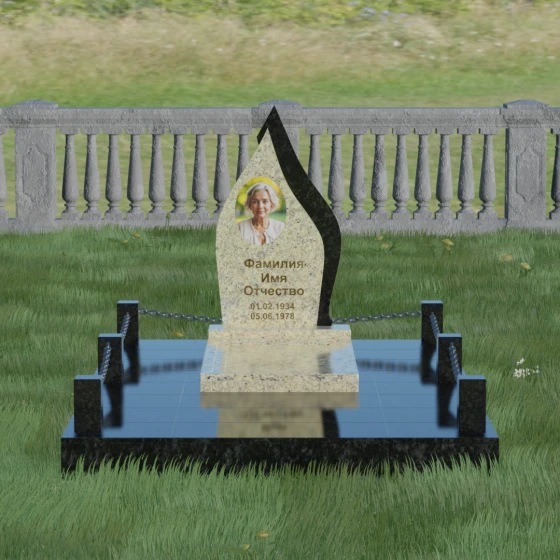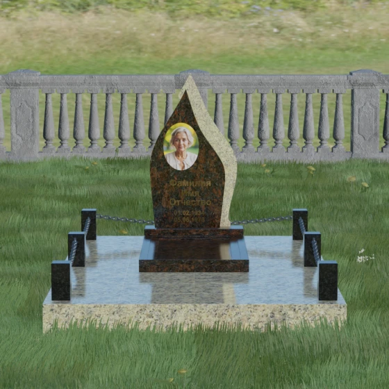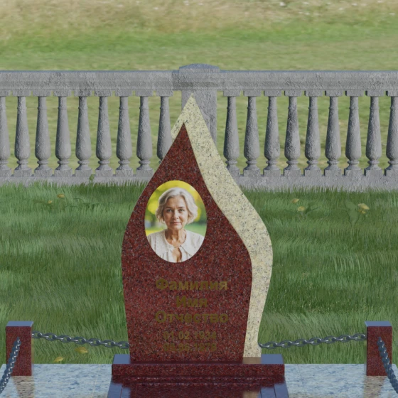 Кому подойдет: Данная мемориальная композиция является универсальной и в то же время очень личной. Благодаря мягким, текучим линиям и форме «пламени», она часто выбирается для оформления захоронений любимых матерей, жен или дочерей, олицетворяя женственность и душевное тепло. Однако при выборе более строгих сочетаний гранита (например, черного Габбро и красного Лезниковского) монумент станет достойным символом памяти для отца, мужа или брата, подчеркивая их внутреннюю силу и непоколебимость. Это идеальный выбор для тех, кто ищет эстетически совершенное решение, объединяющее художественную резьбу и современное благоустройство участка.
