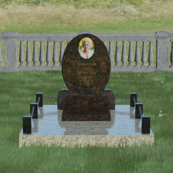 Данное ритуальное изделие притягивает взгляд своей совершенной гармонией и мягкостью линий. В основе композиции лежит безупречный овал — символ вечности, завершенности и бесконечного круговорота жизни. В отличие от строгих прямоугольных форм, эта стела выглядит более одухотворенно и спокойно, привнося на место захоронения атмосферу умиротворения. Особое внимание заслуживает художественная обработка основания: овальная плита плавно переходит в изящную подставку с мягкими «плечами» или волнообразными изгибами, которые создают надежную опору для всей конструкции. Каждая грань камня проходит многоступенчатую ручную и станочную обработку, что позволяет добиться идеальной гладкости. Отсутствие острых углов делает надгробие визуально легким, несмотря на значительный вес натурального камня.
