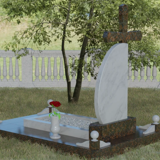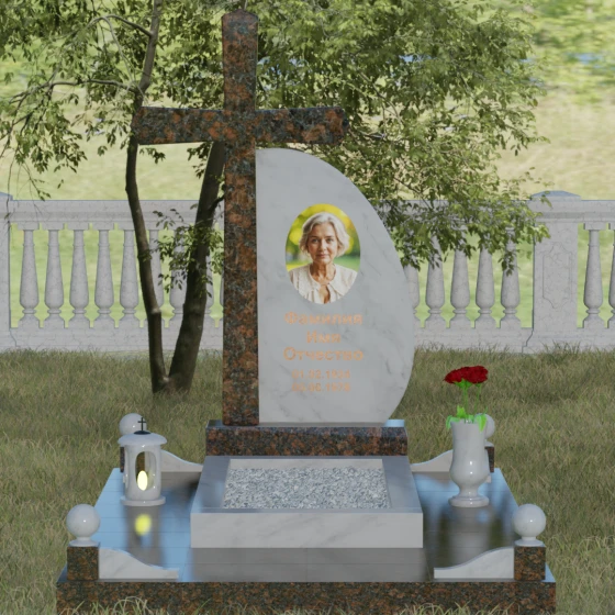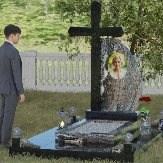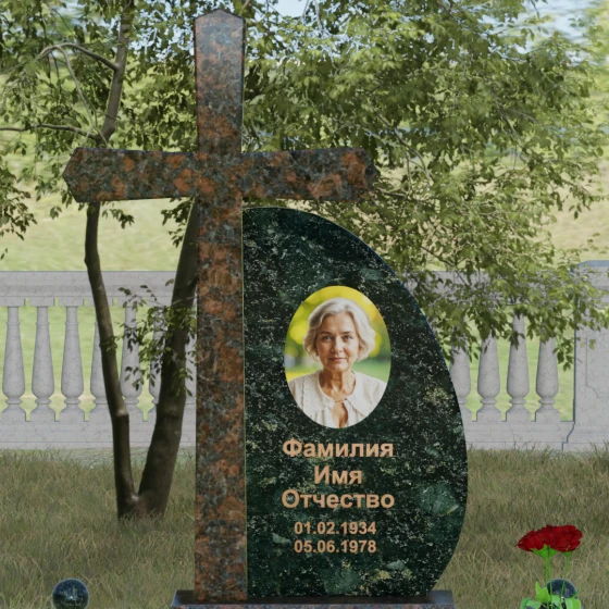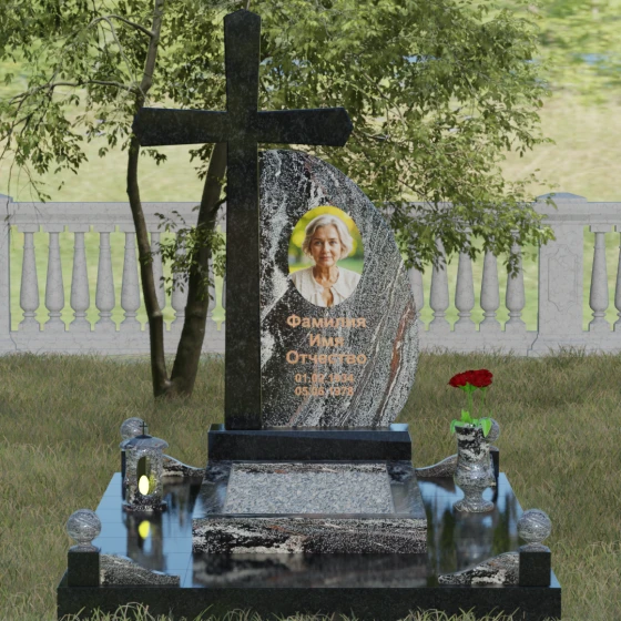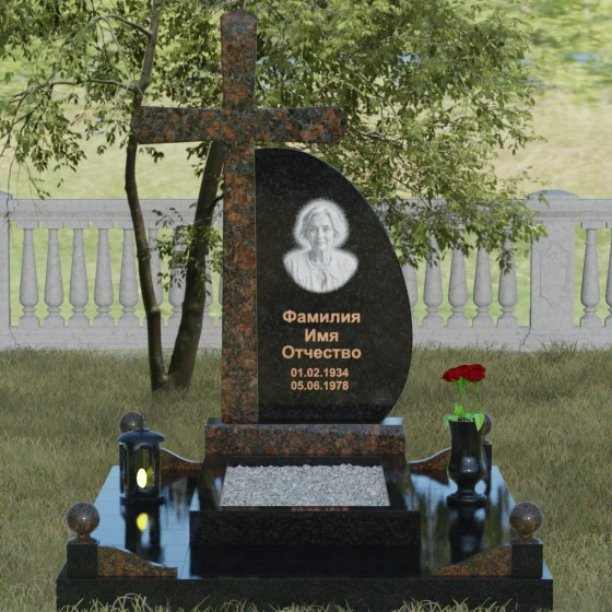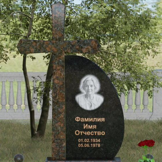 Кому подойдет: Данная модель является универсальной благодаря сочетанию религиозного символа и современной эстетики. В темном исполнении гранитный монумент идеально подходит для оформления мужского захоронения, подчеркивая статус и твердость характера. В более светлых тонах, таких как серый гранит или белый мрамор, композиция приобретает нежность и одухотворенность, что делает ее прекрасным выбором для памятника матери, жене или дочери. Это выбор тех, кто ценит архитектурную целостность и желает увековечить память близкого человека в форме, неподвластной времени.