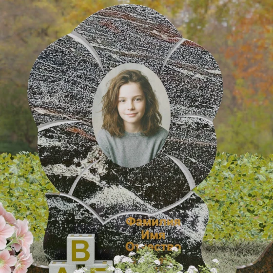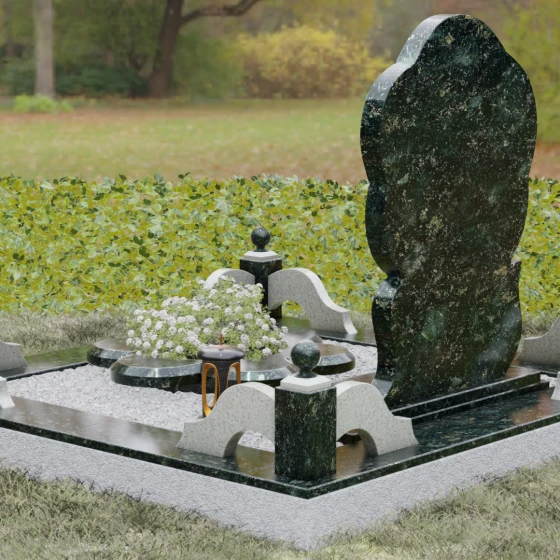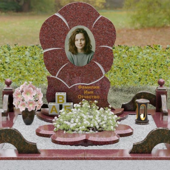 Каждая деталь этого проекта наполнена глубоким смыслом. Цветок в мемориальной пластике традиционно символизирует чистоту души, её расцвет и вечную весну в ином мире. Плавные, текучие линии боковых граней олицетворяют покой и отсутствие земных тревог. Декоративные резные блоки у основания напоминают о начале жизненного пути, о безмятежности и искренности, что делает эту модель особенно подходящей для увековечивания молодых и светлых личностей. Этот ансамбль создает ощущение защиты и умиротворения, превращая место захоронения в пространство светлой печали.