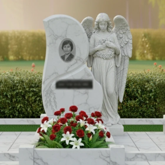 Этот мемориальный комплекс являет собой воплощение скорби и светлой надежды, где центральное место занимает скульптура ангела, словно оберегающего покой ушедшего. Плавные линии стелы, дополненные изящной гравировкой, контрастируют с монументальностью основания, создавая гармоничный и запоминающийся образ. Благодаря возможности выбора из восьми вариантов камня, включая семь видов гранита и благородный мрамор Тассос, памятник может обрести индивидуальный облик, соответствующий характеру и памяти дорогого человека.