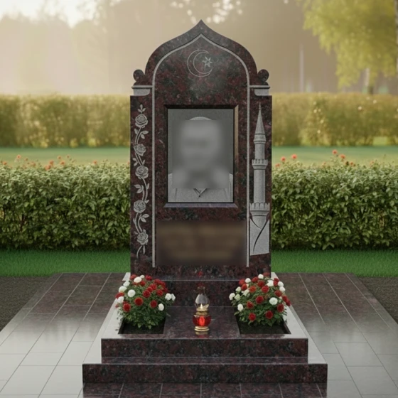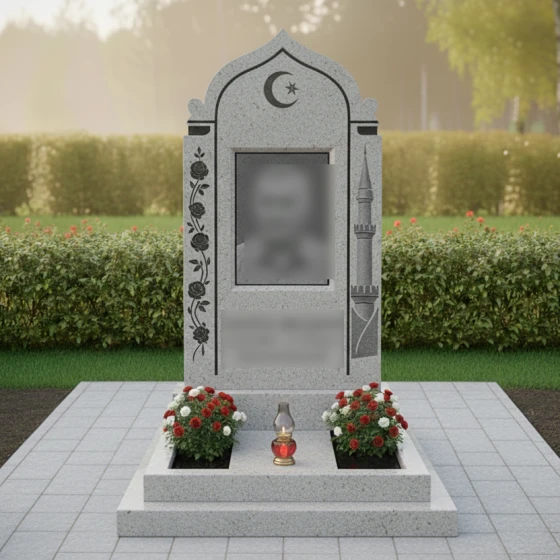 Кому подойдет: Данная модель является универсальным решением для оформления женского или семейного захоронения в мусульманской традиции. Благодаря сочетанию флористических мотивов (розы) и религиозной символики, она идеально подходит для выражения любви и глубокого уважения к матери, супруге или дочери. Это выбор тех, кто ценит эстетическую завершенность, надежность конструкции и желает увековечить память о близком человеке в форме, лишенной суеты и случайных деталей.