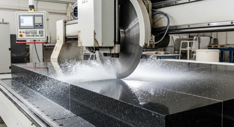 Распиловка: Высокоточные алмазные пилы обеспечивают идеальную геометрию заготовки. Отклонение даже в один миллиметр может привести к неровным стыкам и нарушению герметичности, что со временем приведет к разрушению. Каждый срез выверяется, что является залогом правильной и надежной установки в будущем.