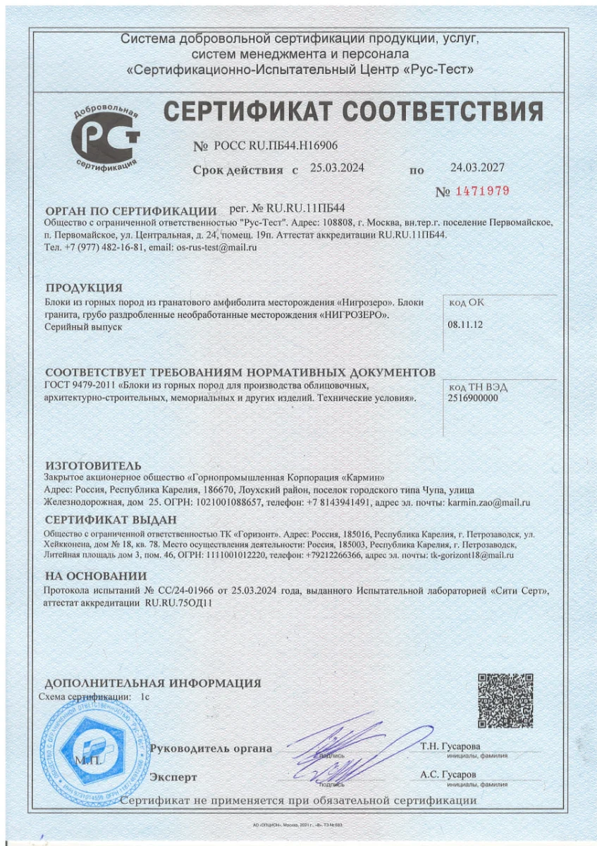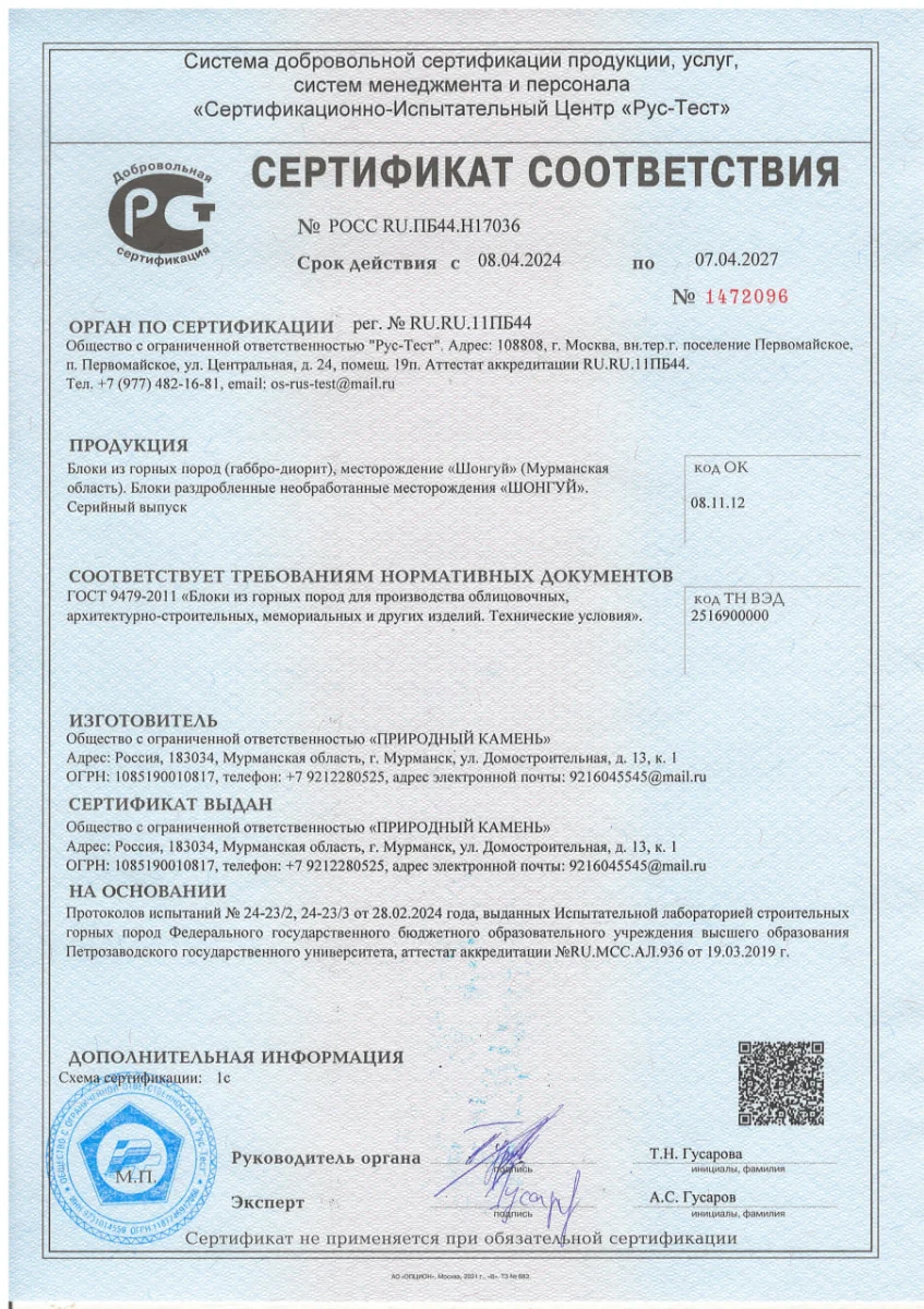 Сертификаты: Гарантия качества и безопасности камня «Мастер Каменев»