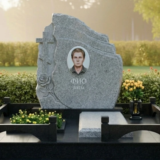 • Аксессуары: Композиция дополнена точеной каменной вазой, выполненной в едином стиле с основным монументом, что позволяет поддерживать эстетический порядок на месте захоронения.